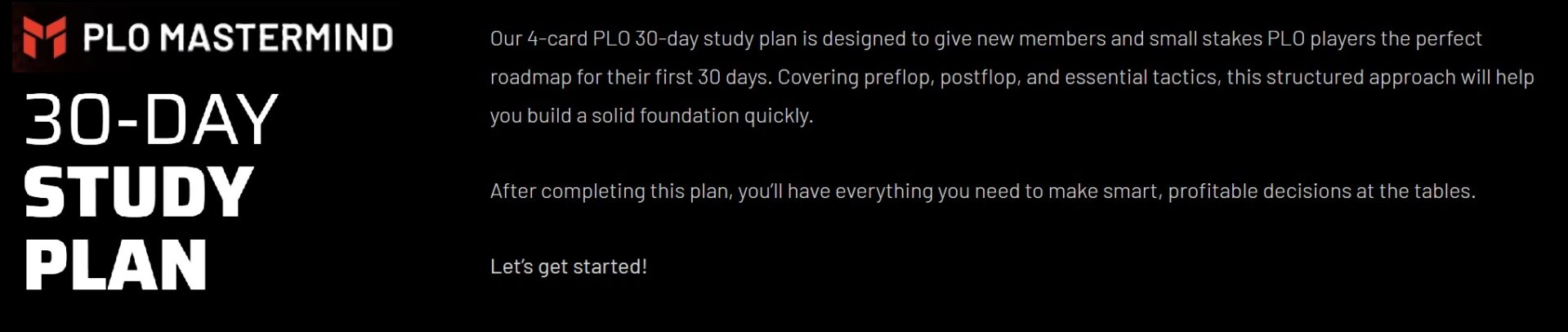 PLO Mastermind offers the most structured 30-day courses for mastering Omaha Poker, covering both classic 4-Card and modern 5-Card Pot Limit Omaha. Their PLO4 30-day study course guides you from fundamentals to advanced strategy with daily lessons and interactive training, ensuring a seamless learning curve for all skill levels.