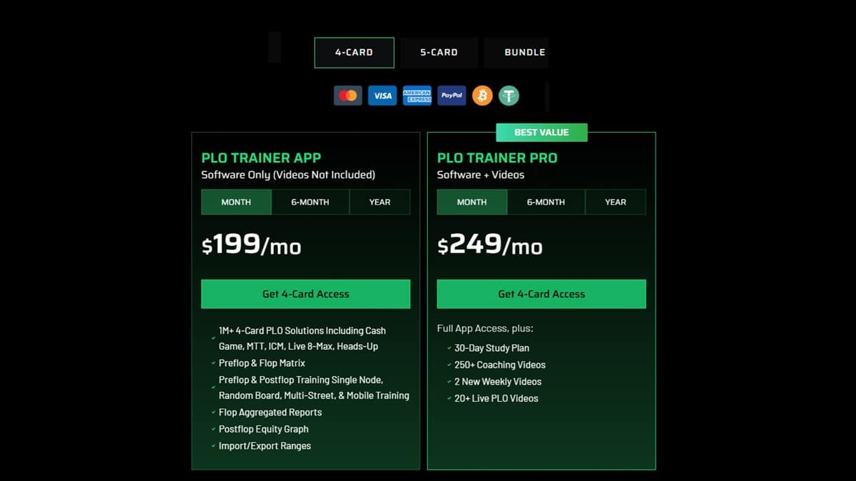 - PLO Trainer Only: ~$199/mo (25% off with yearly subscription)