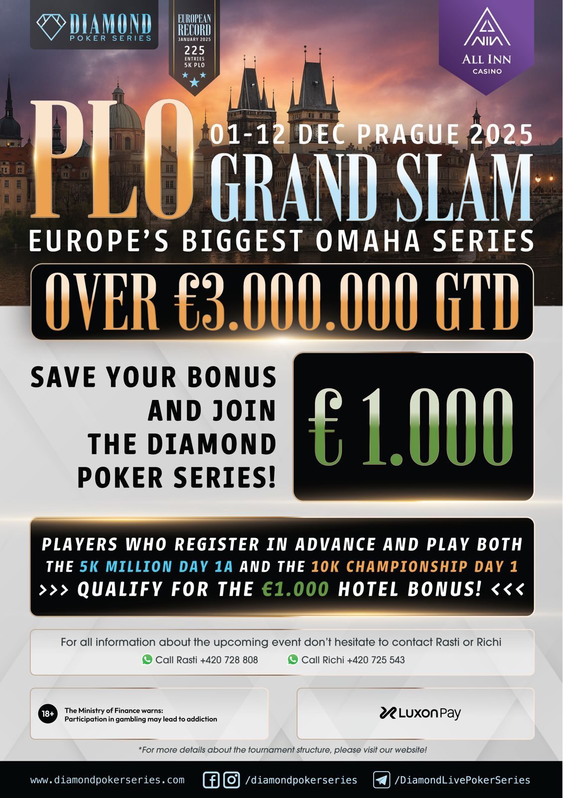 • What: Diamond Poker Series PLO Grand Slam Prague 2025 – a PLO-only tournament series.