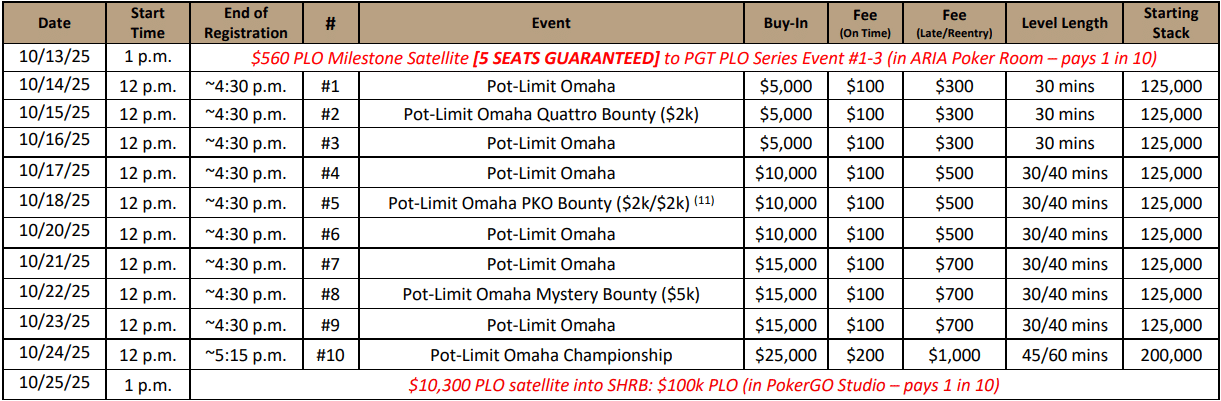Upcoming Events of the 2025 PGT PLO Series II