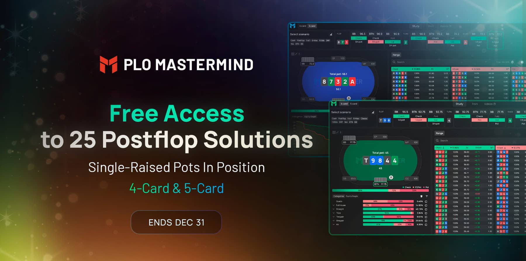 • Offer: 25 Free Postflop Solutions in PLO Trainer (Expires Dec 31).