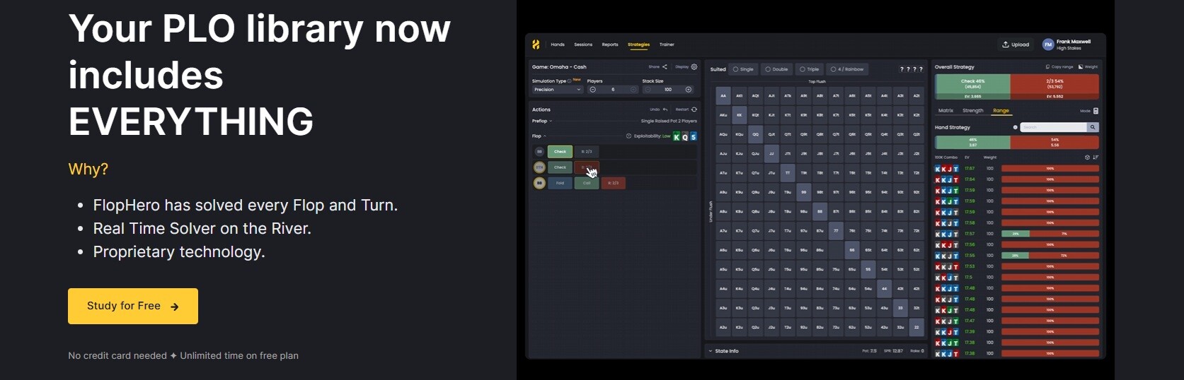 Most PLO tools give you partial coverage or rely on “substitute” boards. FlopHero doesn’t. It offers:
