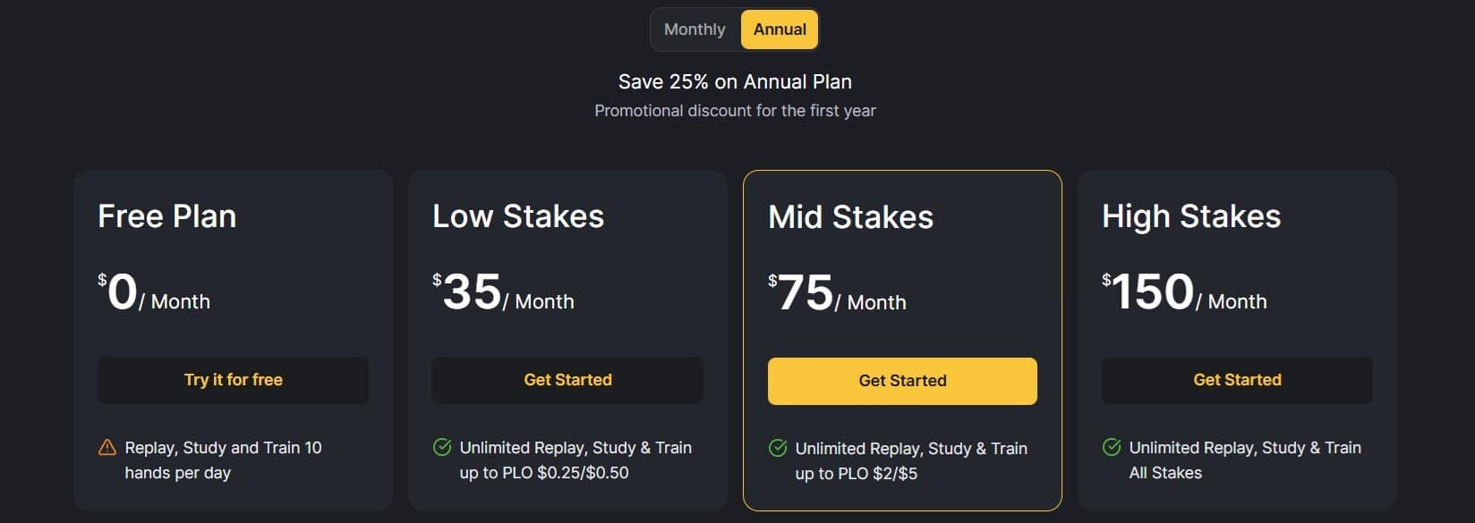 - Free Plan: 10 analyzed hands per day, no card required, no time limit